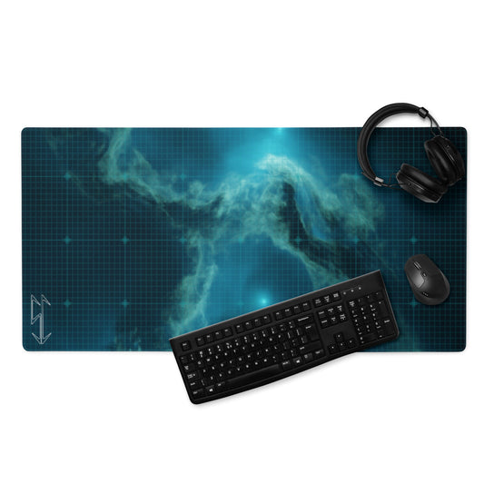 Cold Blue Nebula Design with Grid : Gaming mouse pad