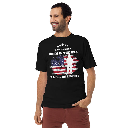 Born In The USA, Raised On Liberty, Men’s premium heavyweight tee