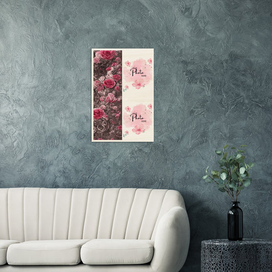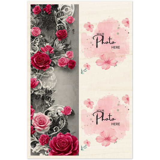 Wood Prints : Twin Photo Display (Personalised Mothers Day) Classic Rose.