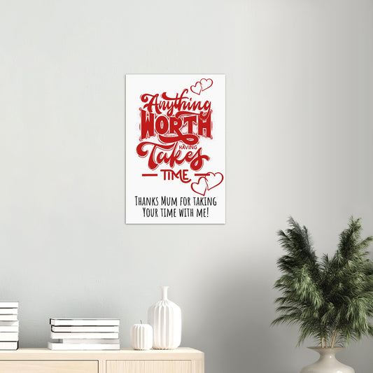 Mothers day, Anything worth while takes time : White 11oz Ceramic Mug