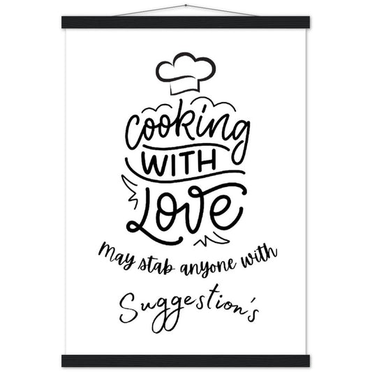 Premium Matte Paper Poster & Hanger : Cooking with love, may stab anyone with suggestion