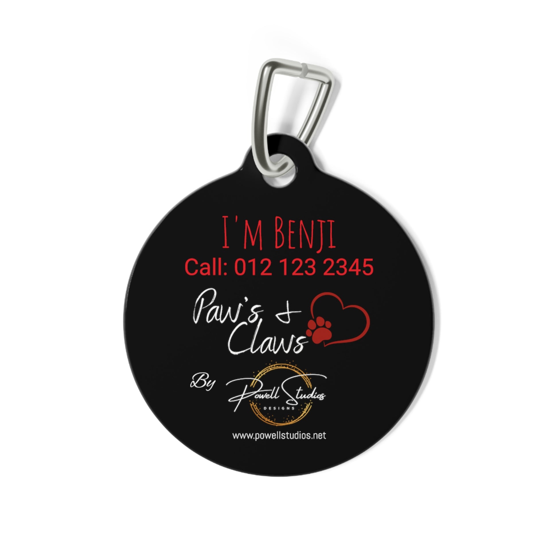 But that's not all - our attention to detail doesn't stop at the front of the tag. Flip it over to reveal our stylish "Paw's & Claw's" collection branding, a testament to our commitment to pet fashion and flair. And guess what? We've even left a space on the back for you to add your pet's name and phone number, or any other creative content you desire. It's like giving your dog their very own personalized business card, ensuring that they're always ready to make new friends or reconnect with old ones.