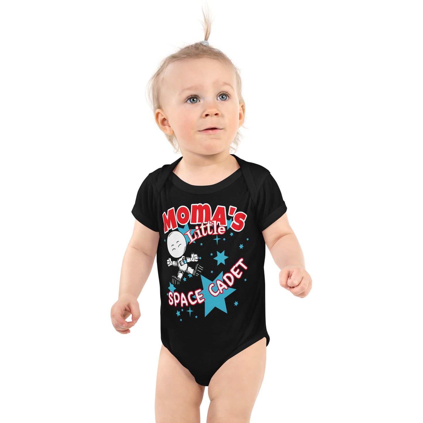 Introducing the newest addition to our baby clothing line: the Moma's Little Space Cadet Romper! This adorable design features a playful illustration of a little astronaut soaring through the galaxy, complete with stars. Perfect for all the little space cadets and future astronomers out there, this romper is sure to delight both parents and little ones alike. Not only is it cute and stylish, but it's also made with high-quality materials for ultimate comfort and durability. So, strap on your space suit and blast off into the fashion stratosphere with Moma's Little Space Cadet Romper!