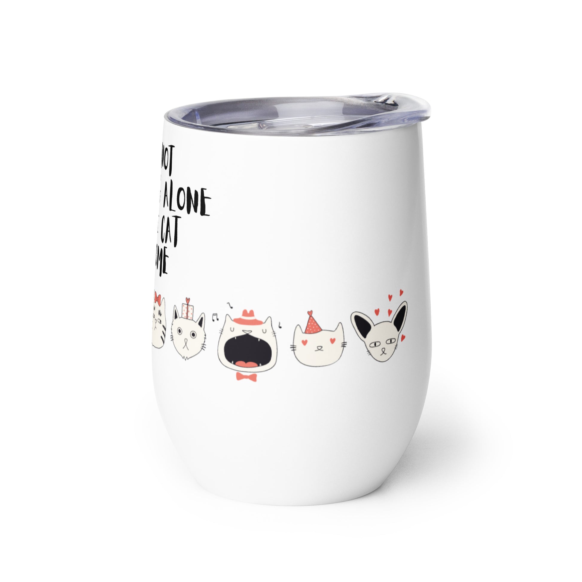 Congratulations on your new 'It's Not Drinking Alone, If The Cat Is Home' wine tumbler! This playful and witty accessory is the perfect way to show off your love for your furry companion while indulging in your favorite wine. Whether you're settling down for a quiet night in or entertaining guests, this tumbler is sure to spark conversation and laughter.