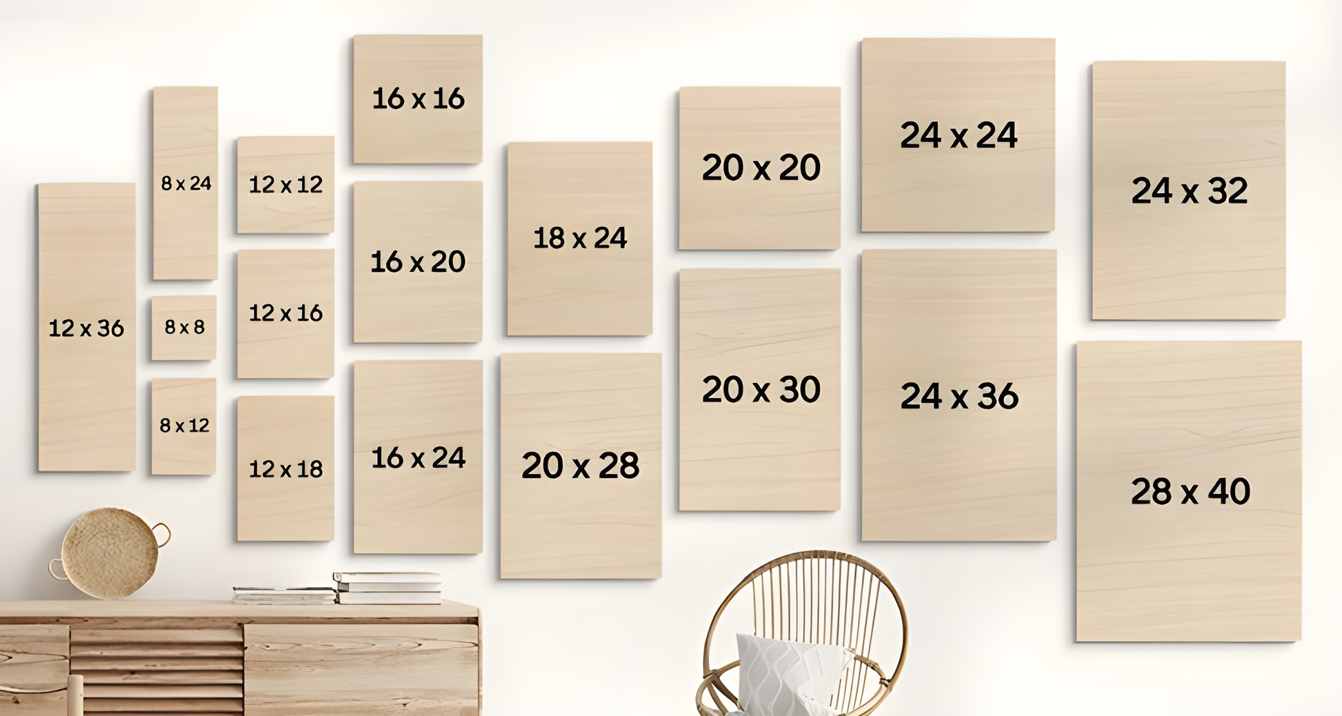 - Thick wood prints have a groove for hanging