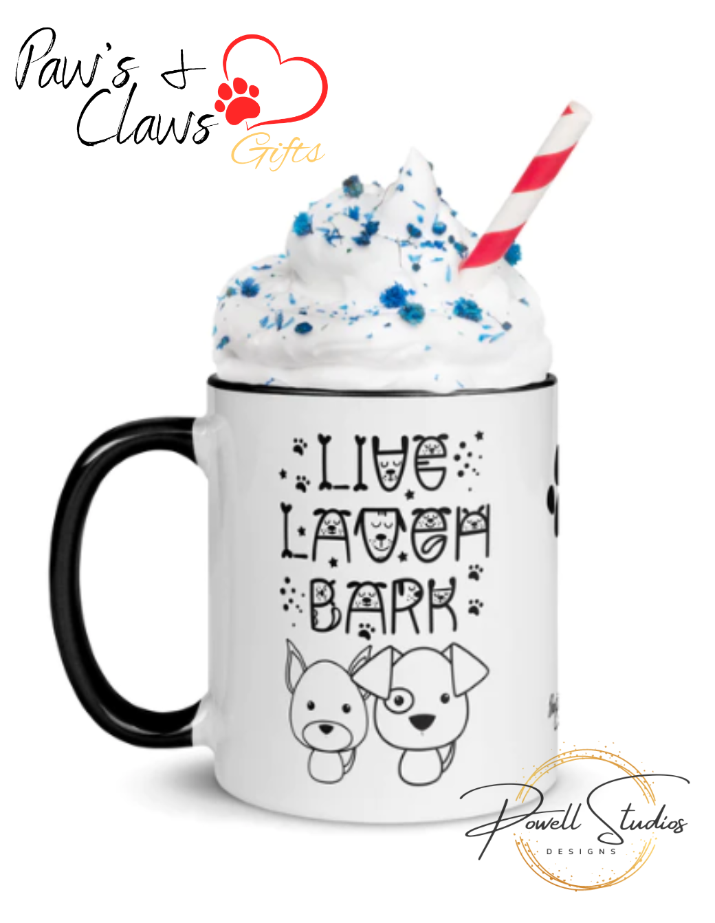 Live Laugh Bark, Dog lovers Mug with Color Inside. Puppy coffee mug, perfect for the Dog Lady in your life.