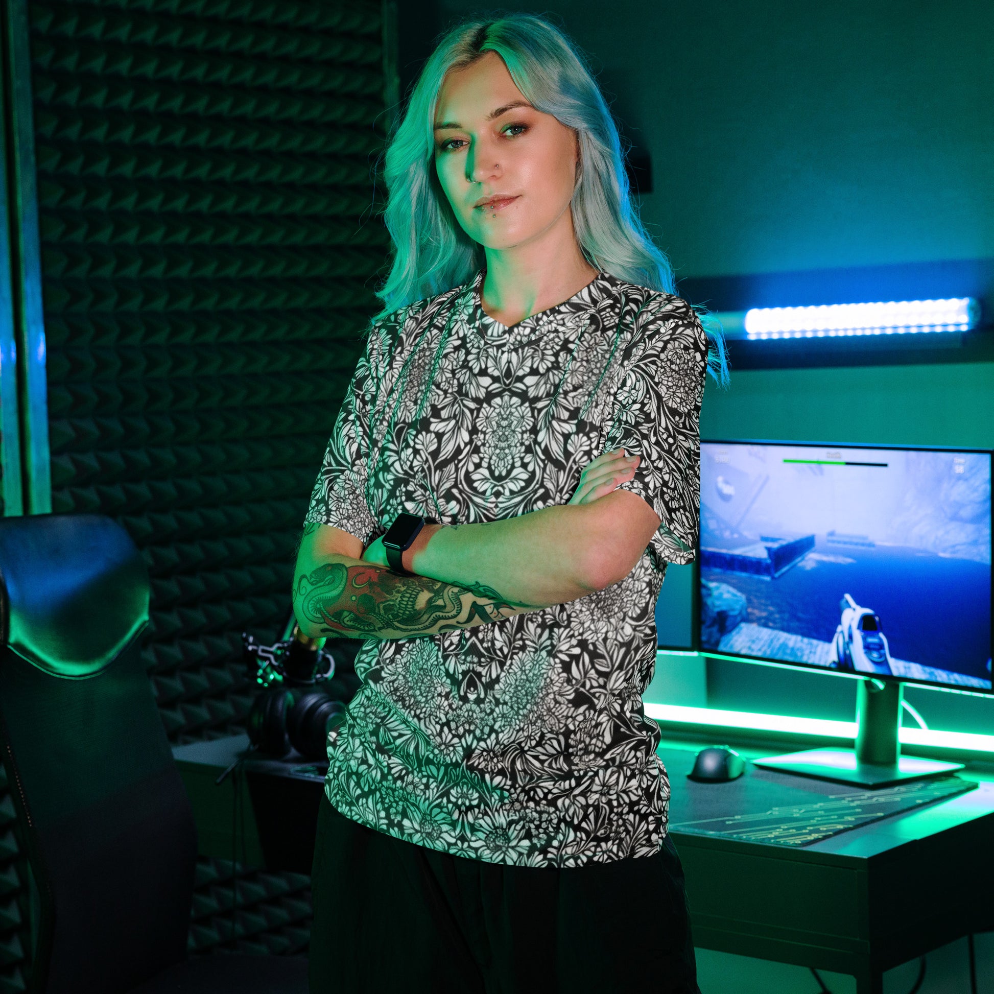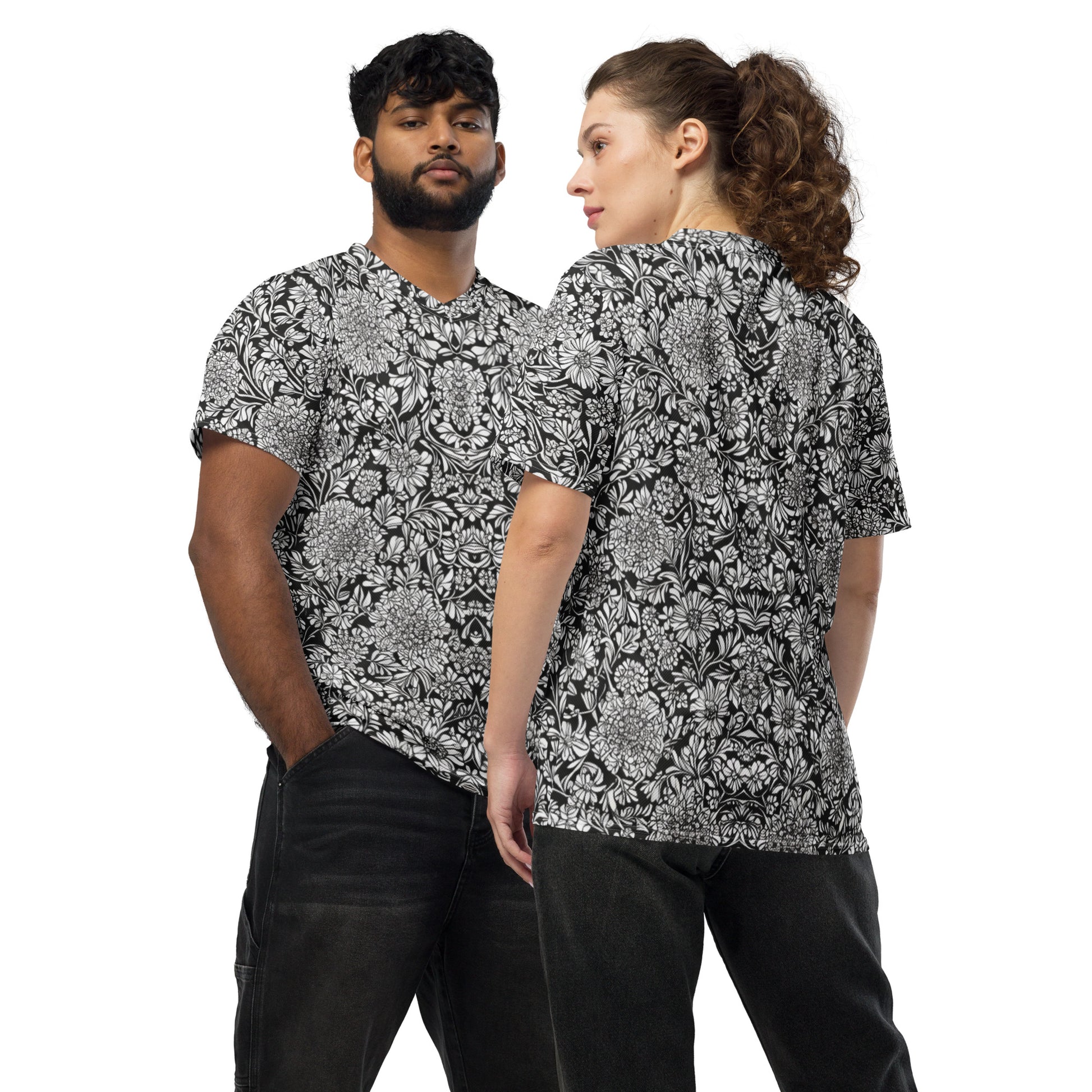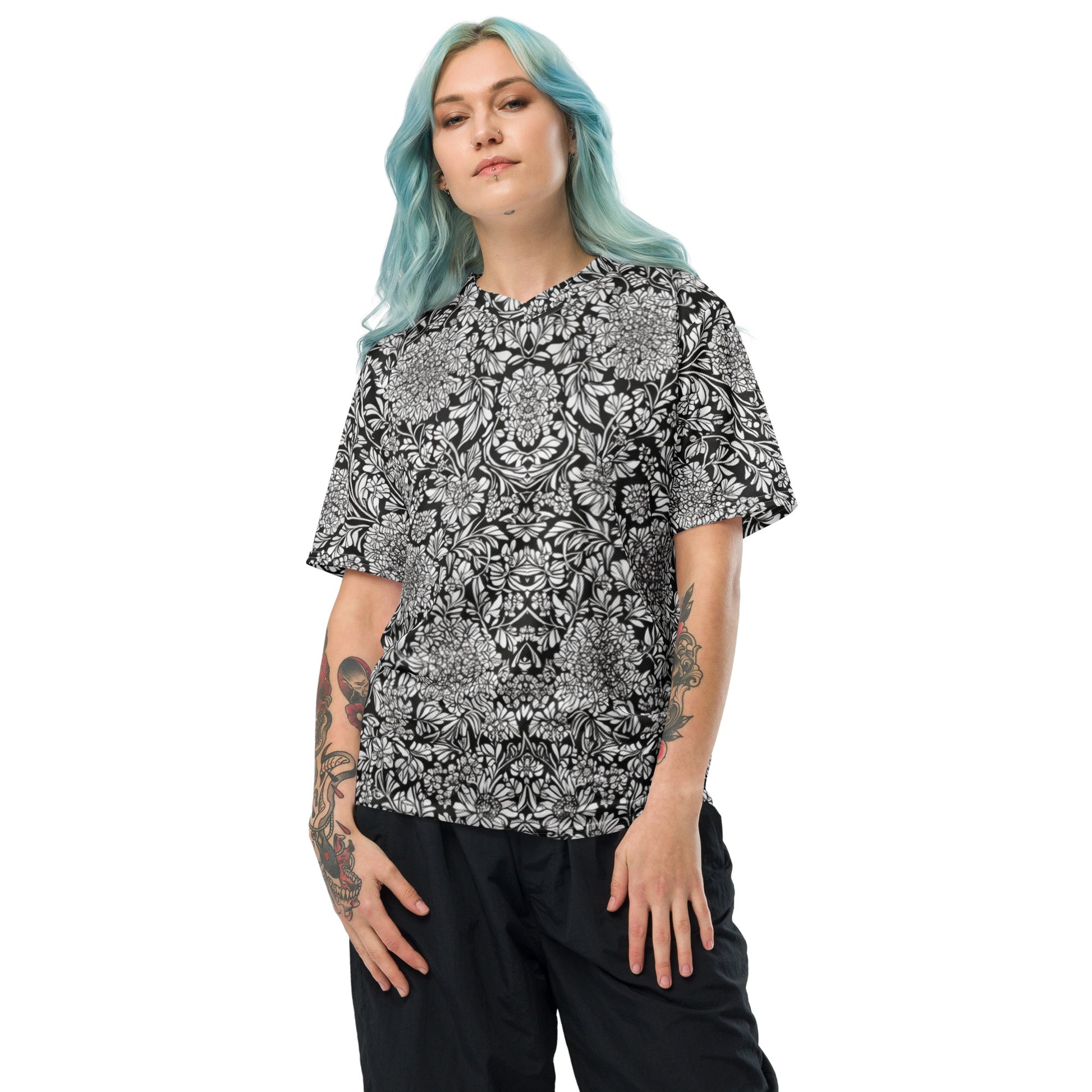 Introducing the newest addition to our sustainable fashion line - the Monochrome Floral All Over Recycled Unisex Sports Jersey! This bad boy is not your average sports jersey, oh no. It's a eco-friendly, flower power, sweat-wicking dream come true. Whether you're hitting the field, hitting the gym, or hitting the couch (let's be real, we all have those days), this jersey is the perfect companion. Plus, with its unisex design, you can finally settle that age-old debate of whose jersey is whose in the household. So, come on, let's all get in the game and make the planet a little greener with every wear.
