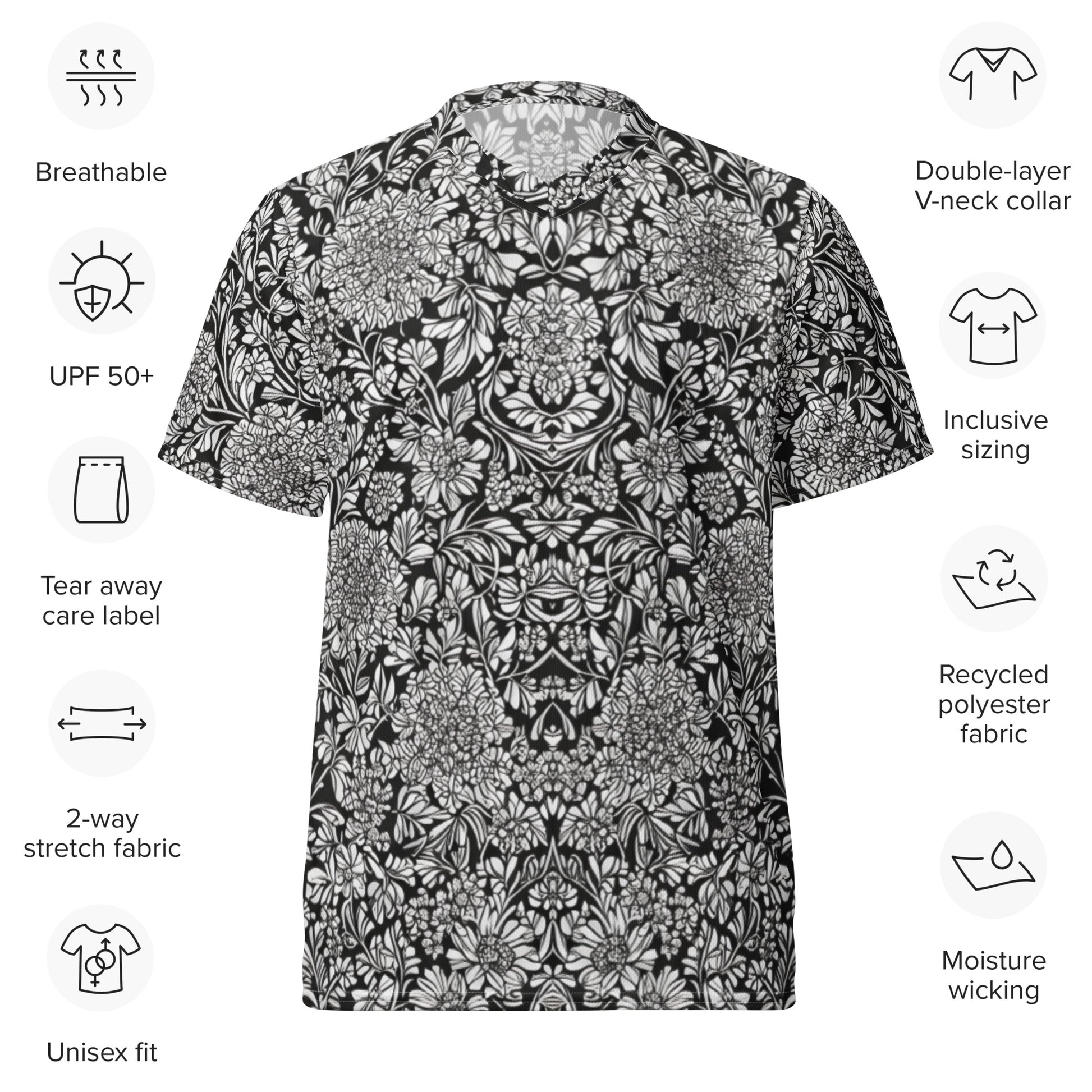 Looking for the perfect sports jersey? We have you covered—made of 100% recycled polyester fabric, this shirt is breathable, moisture-wicking, and has a double-layered v-neck collar that creates a premium look.