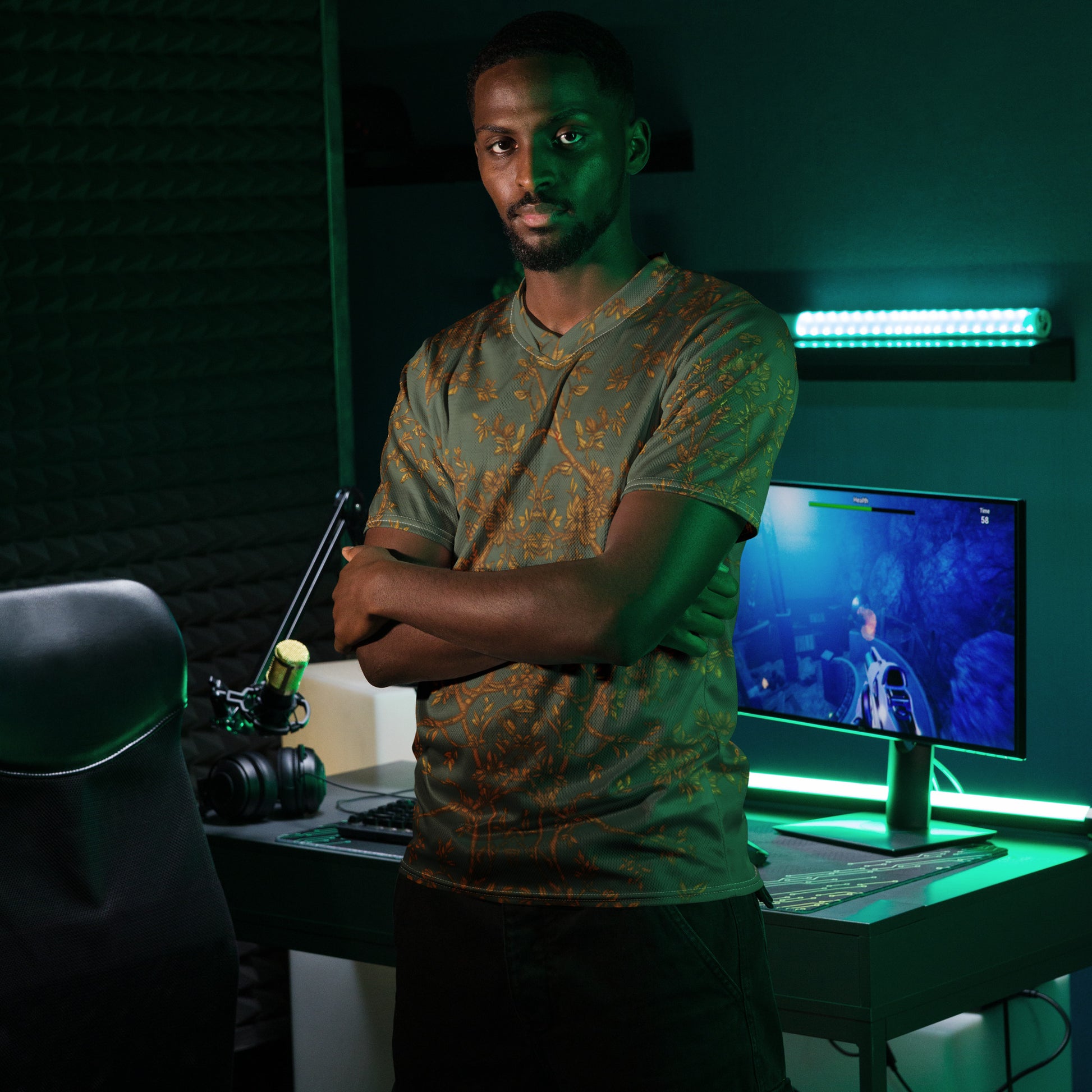 Looking for the perfect sports jersey? We have you covered—made of 100% recycled polyester fabric, this shirt is breathable, moisture-wicking, and has a double-layered v-neck collar that creates a premium look.