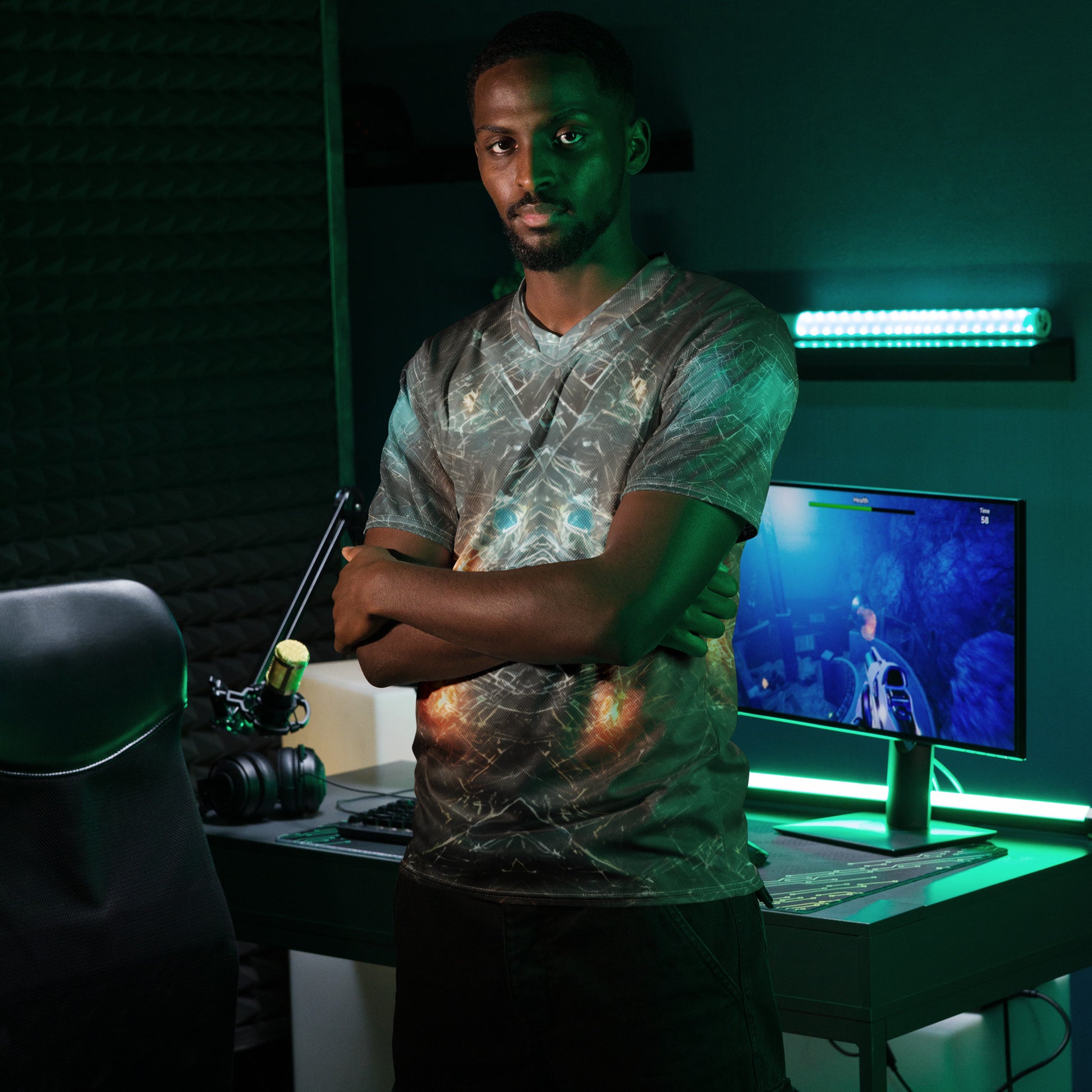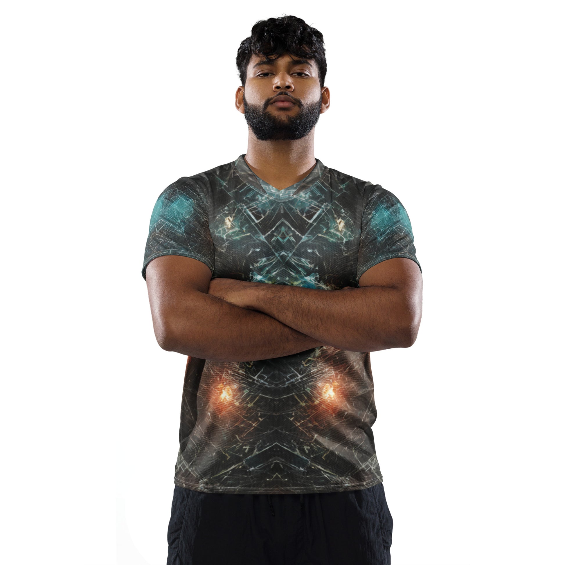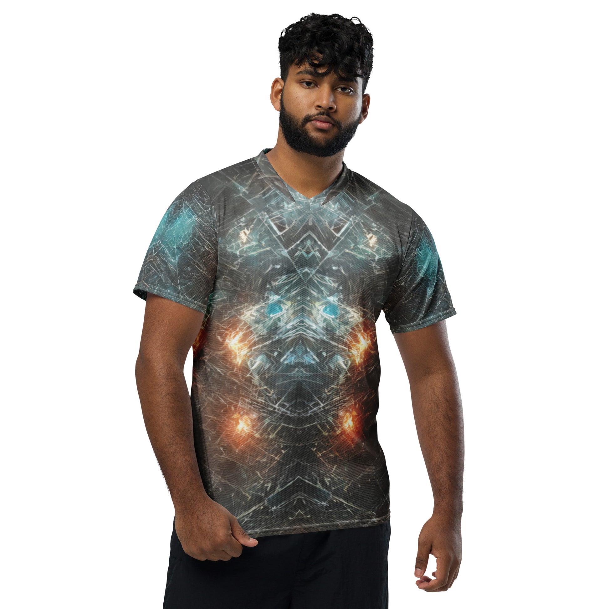 Looking for the perfect sports jersey? We have you covered—made of 100% recycled polyester fabric, this shirt is breathable, moisture-wicking, and has a double-layered v-neck collar that creates a premium look.