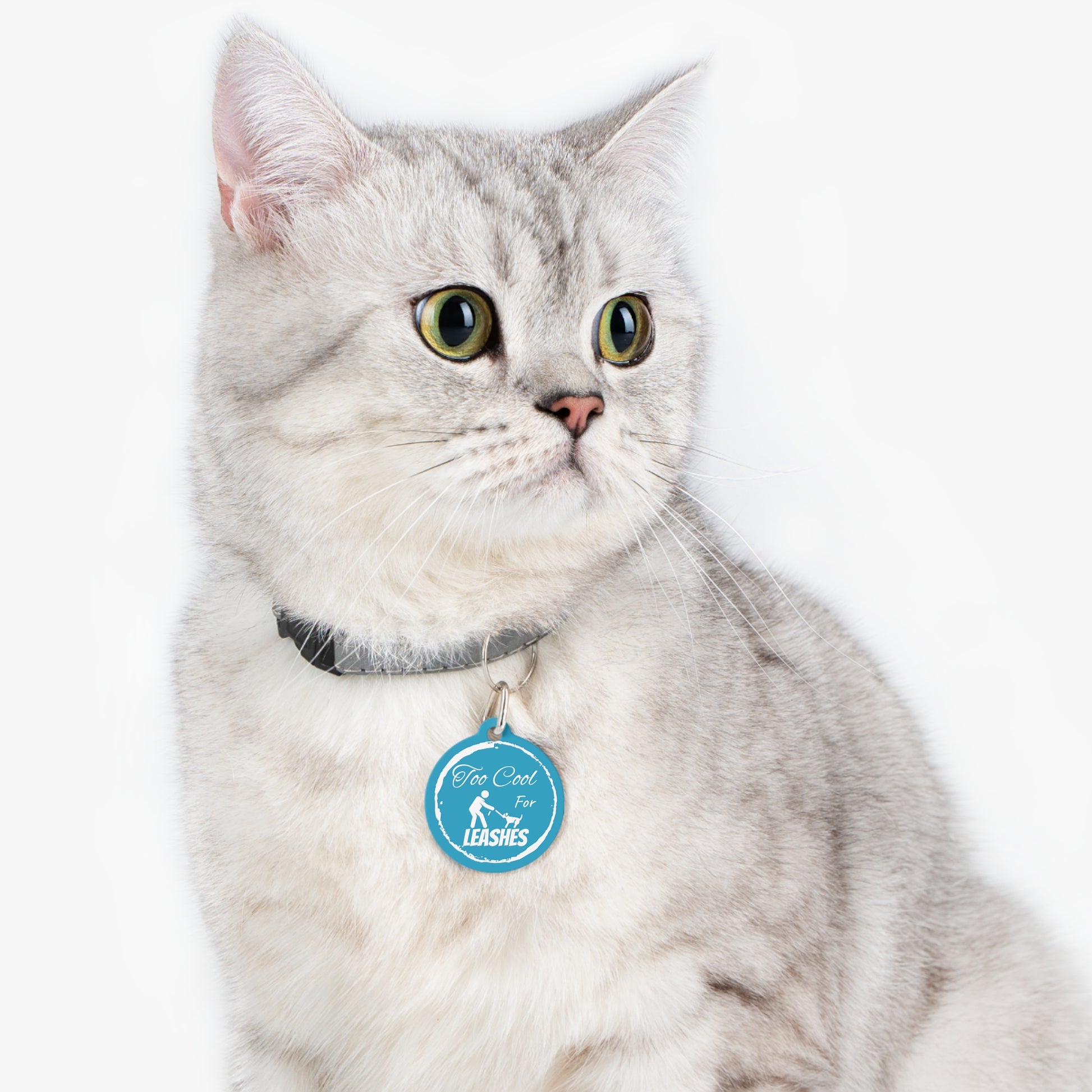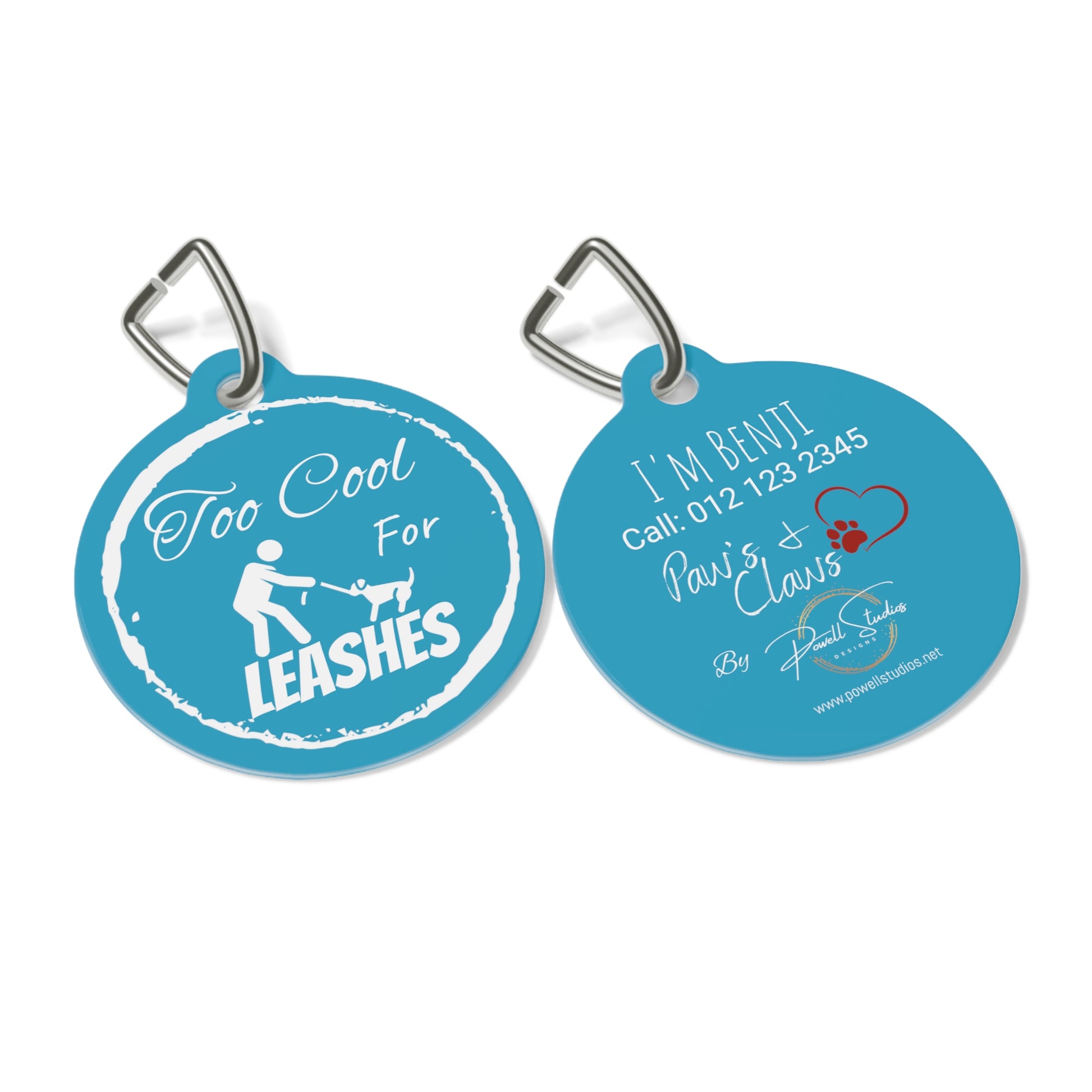 Blue "Too Cool For Leashes" Pet Tag, Dog tag, Dog ID, Cat tag, Cat ID