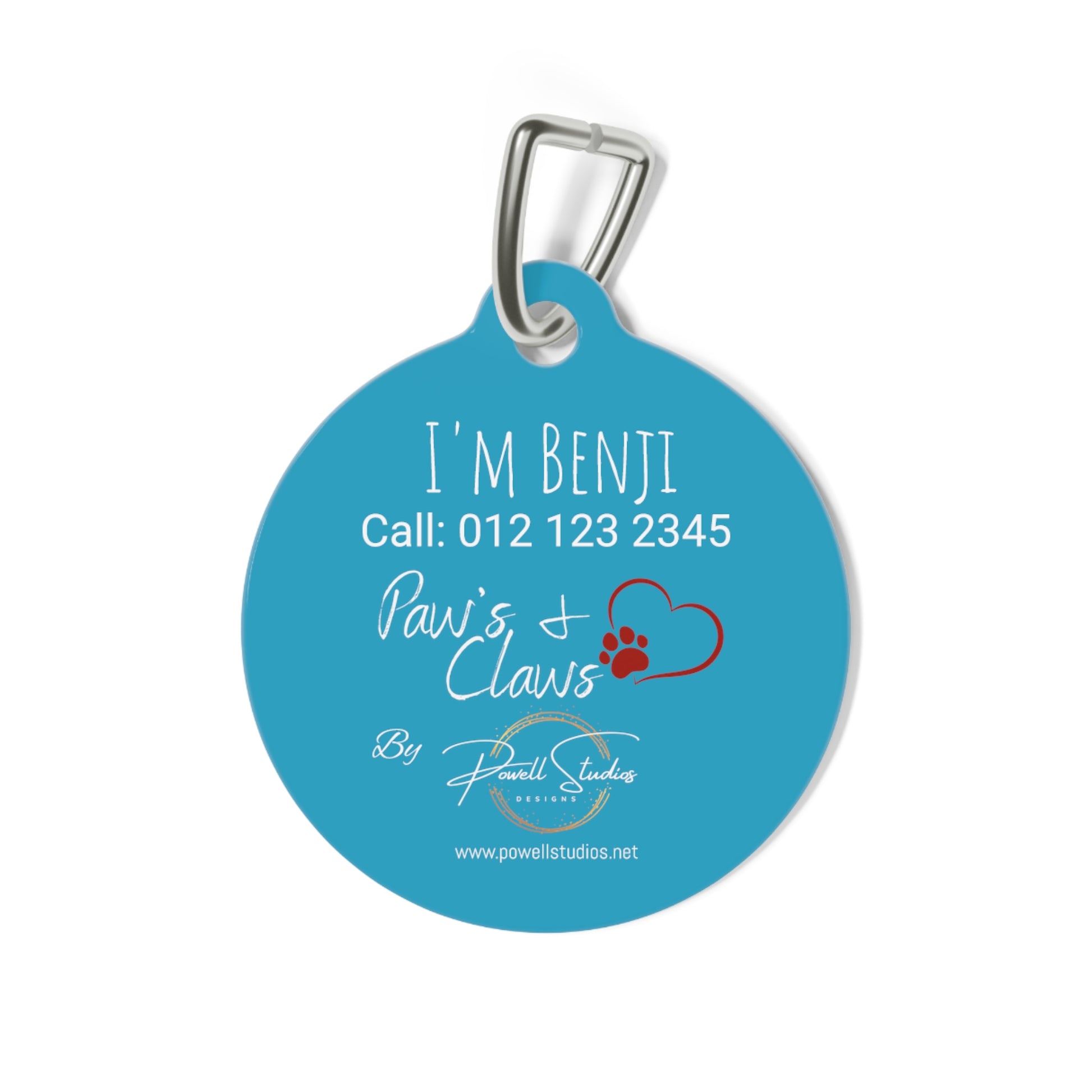 But that's not all - our attention to detail doesn't stop at the front of the tag. Flip it over to reveal our stylish "Paw's & Claw's" collection branding, a testament to our commitment to pet fashion and flair. And guess what? We've even left a space on the back for you to add your pet's name and phone number, or any other creative content you desire. It's like giving your dog their very own personalized business card, ensuring that they're always ready to make new friends or reconnect with old ones.